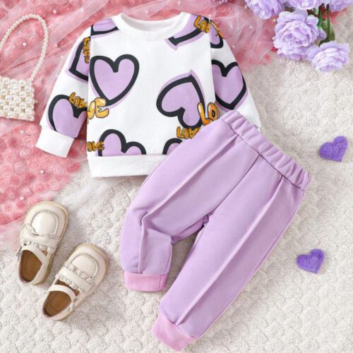 Purple Heart Print Girls Shirt & Trouser Set